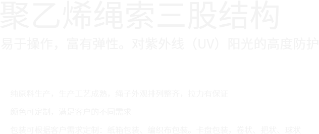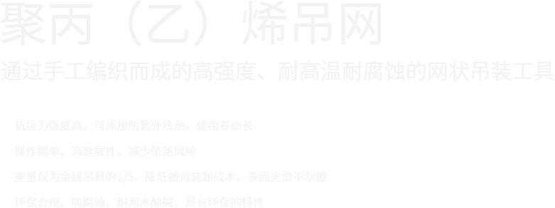烟台市东源塑料制品有限公司成立于1999年,是国内一家从原料采购到成品网兜及绳索的企业,拥有专门的质量检测部门。主营:聚乙烯(PE)塑料绳网、朝鲜麻(PP)材料的网络兜、化肥吊装网兜、货物封垛网,封车网、安全网、养殖绳,船边安全网及各种特殊规格的手工编织吊装网、安全网,主要应用于港口、化肥生产企业、粮油加工企业豆粕的仓储与运输。生产的聚乙烯(PE)、朝鲜麻(PP)绳索主要应用于工业、农业、渔业养殖等。经过20多年的努力,先后成为烟台港、青岛港、天津港、营口港秦皇岛港等港口的吊装网定点加工企业并成为益海嘉里集团的集团供应商,于云天化集团、阳煤集团心连心化肥、五洲丰化肥、正元化工、安徽辉隆五禾丰等大型化工企业保持着长年的供货关系,并受到大家的一致称赞,至今无一例质量问题,年生产网兜60万条,销售绳索3000吨。